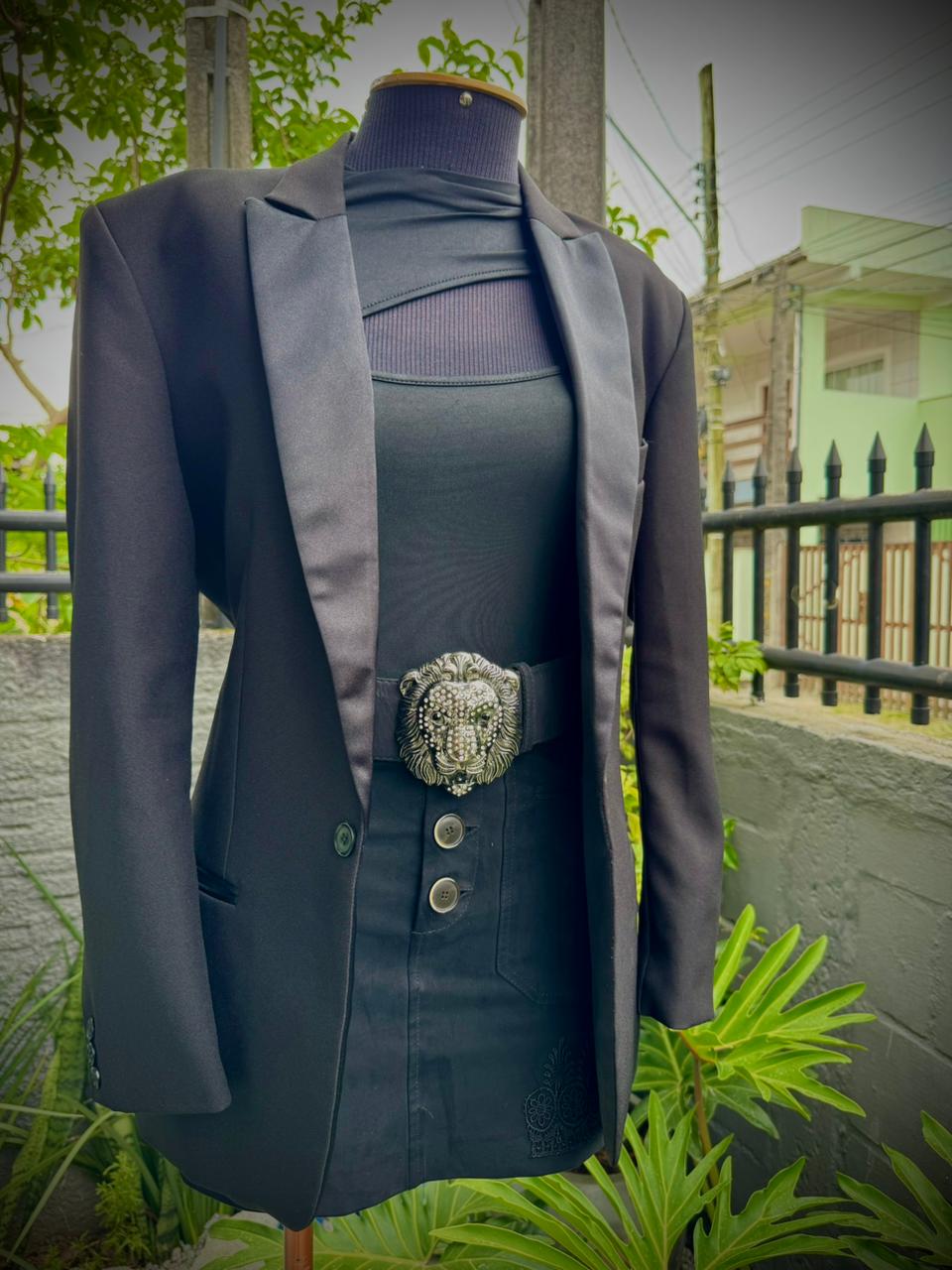 Blazer Alongado detalhe Lapela cetim.
