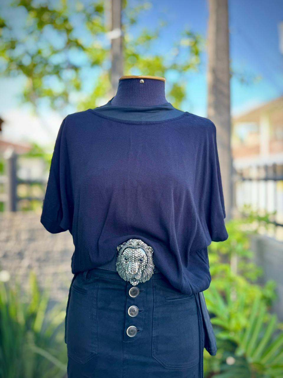 Código 33 Um acessório marcante que transforma qualquer look. Sua fivela em formato de leão, rica em detalhes e aplicações de strass, traz personalidade e brilho na medida certa. Feito para quem gosta de estilo forte e elegante, combina com peças casuais ou mais arrumadas. Uma escolha perfeita para destacar sua identidade com sofisticação.